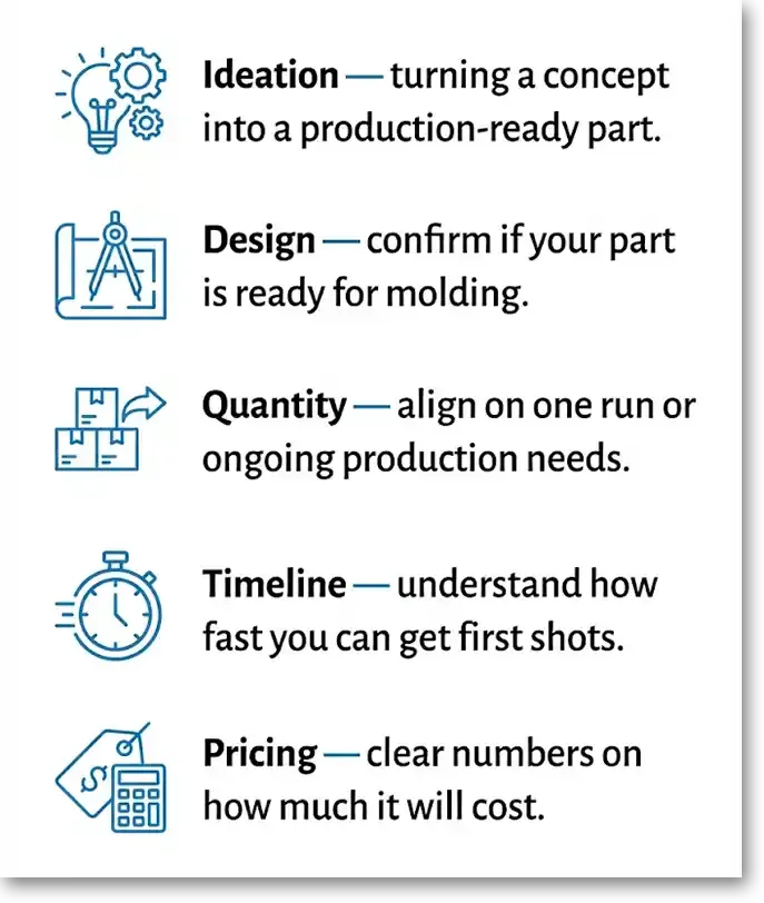 Talk through your part, materials, and goals so we can outline realistic costs and lead times.